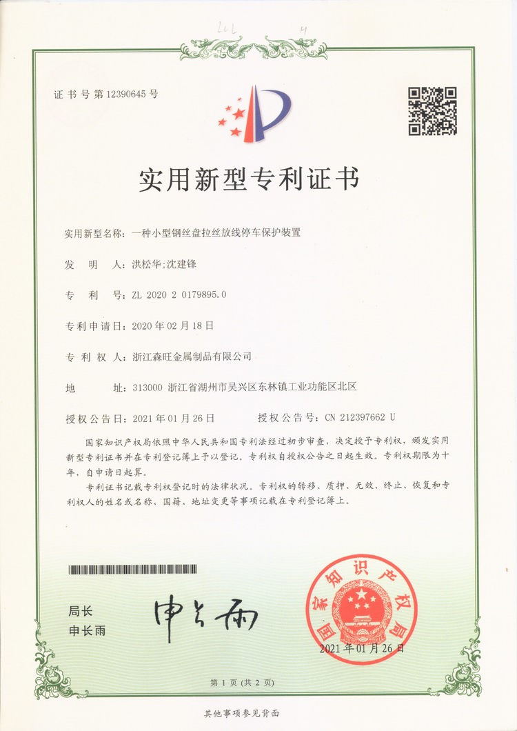 浙江森旺金屬制品有限公司成立于2012年,坐落湖州市吳興區(qū)東林鎮(zhèn)工業(yè)功能區(qū)。公司專業(yè)從事各類鍍鋅鋼絲、鋼絞線等產(chǎn)品的開(kāi)發(fā)及生產(chǎn)。目前產(chǎn)品已廣泛應(yīng)用于各類通信光電纜,電力輸送,電氣化鐵路工程,各類堤壩防護(hù)及農(nóng)業(yè)溫室等工程領(lǐng)域。公司秉承“追求卓越品質(zhì),創(chuàng)建卓著信譽(yù)”的經(jīng)營(yíng)理念,始終堅(jiān)持專業(yè)化、規(guī)模化的經(jīng)營(yíng)模式。